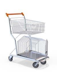 organizada. É produzido em aço aramado e equipado com rodas e rodízios que
